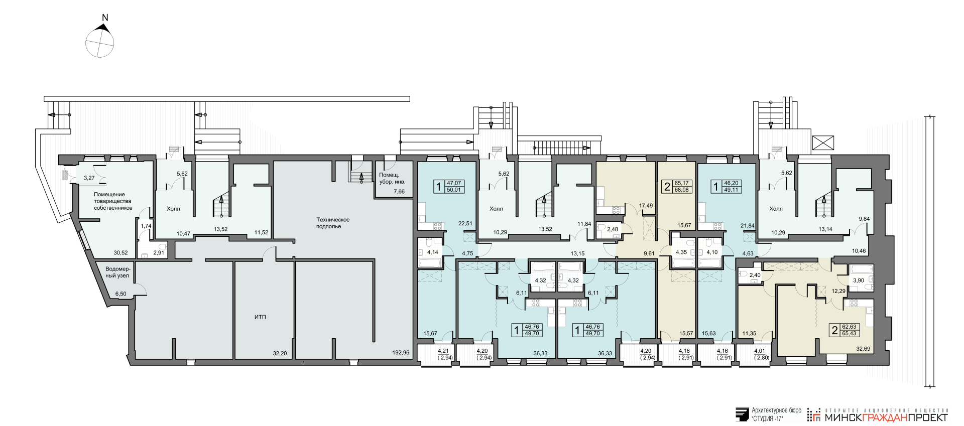 - 9 (девять) однокомнатных квартир общей площадью от 49,7 до 50,01 кв.м.;