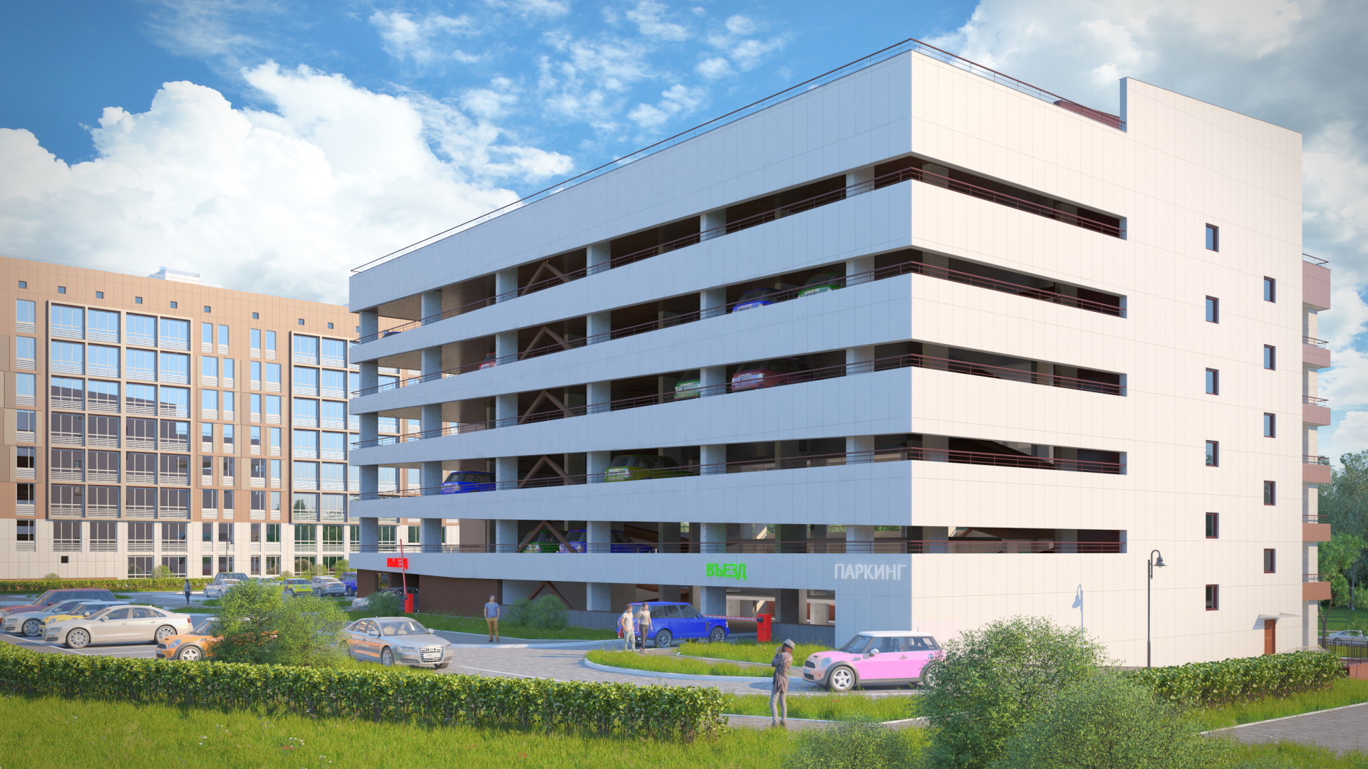 6-этажное сооружение открытого типа на 294 машино-места, возводимое в железобетонном каркасе |