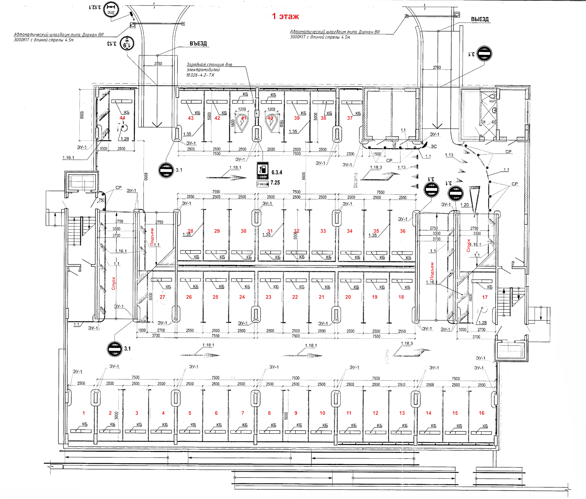 Стены и перегородки здания – кирпичные, монолитные железобетонные, из блоков ячеистого бетона Ограждения стояночных мест – металлические с полимерным покрытием Наружная отделка: вентилируемая система навесных фасадов |