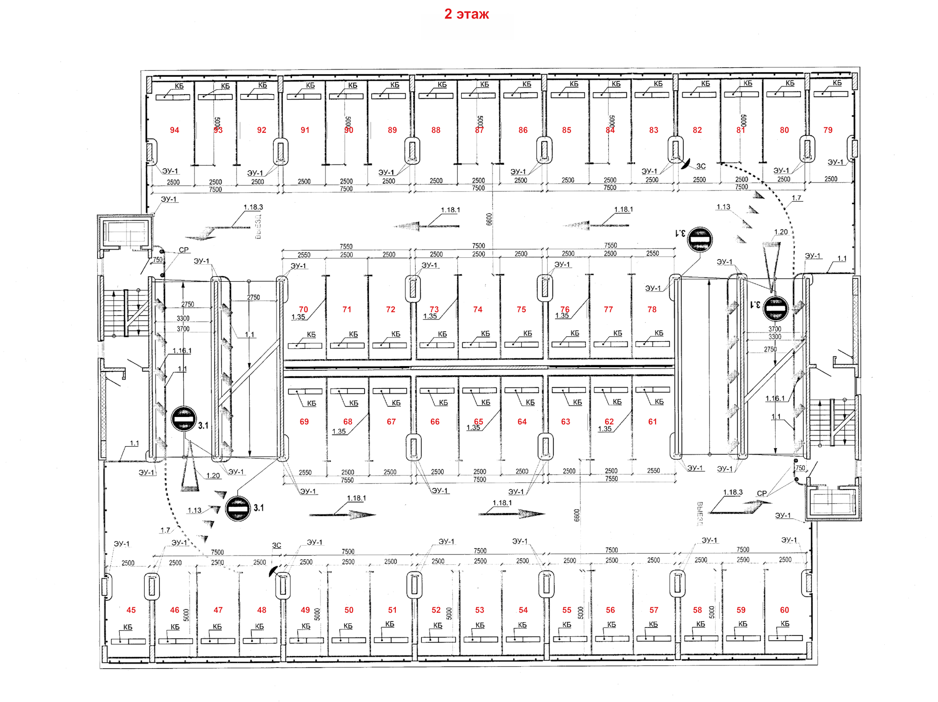 2 пассажирских лифта, 2 лестницы |